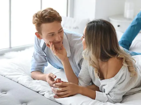 Зной – “Couple sharing an affectionate moment on the bed, looking at each other” Image Author: unknown https://freerangestock.com/photos/179075/couple-sharing-an-affectionate-moment-on-the-bed-looking-at-each-other.html License: Equalicense
