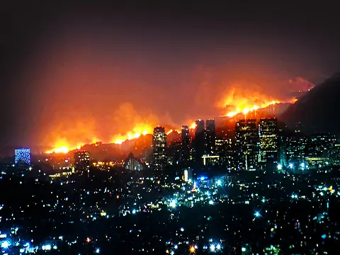 Southeast of Fresno as Los Angeles Burns – Palisades Fire as seen from Downtown Los Angeles Image Author: Toastt21 https://commons.wikimedia.org/wiki/File:PalisadesFire_fromDowntown.png License: CC BY-SA 4.0 Creative Commons Attribution-Share Alike 4.0 International. Changes made: cropped the image, resized image to 480×360, removed place/time stamp, applied brightness and contrast corrections
