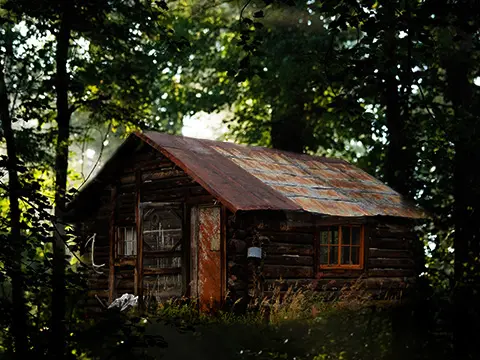 A Brief History of Greed – “Miner’s Cabin and Forest” Composite by Deborah Goschy