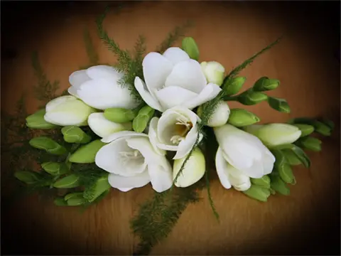 Corsage – “White Freesia Wedding Corsage” Image Author: unknown https://picryl.com/media/white-corsage-freesia-wedding-corsage-6eaf49 License: Public domain/Pixabay Content License